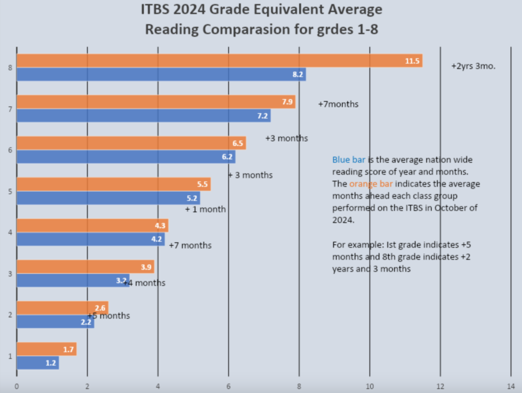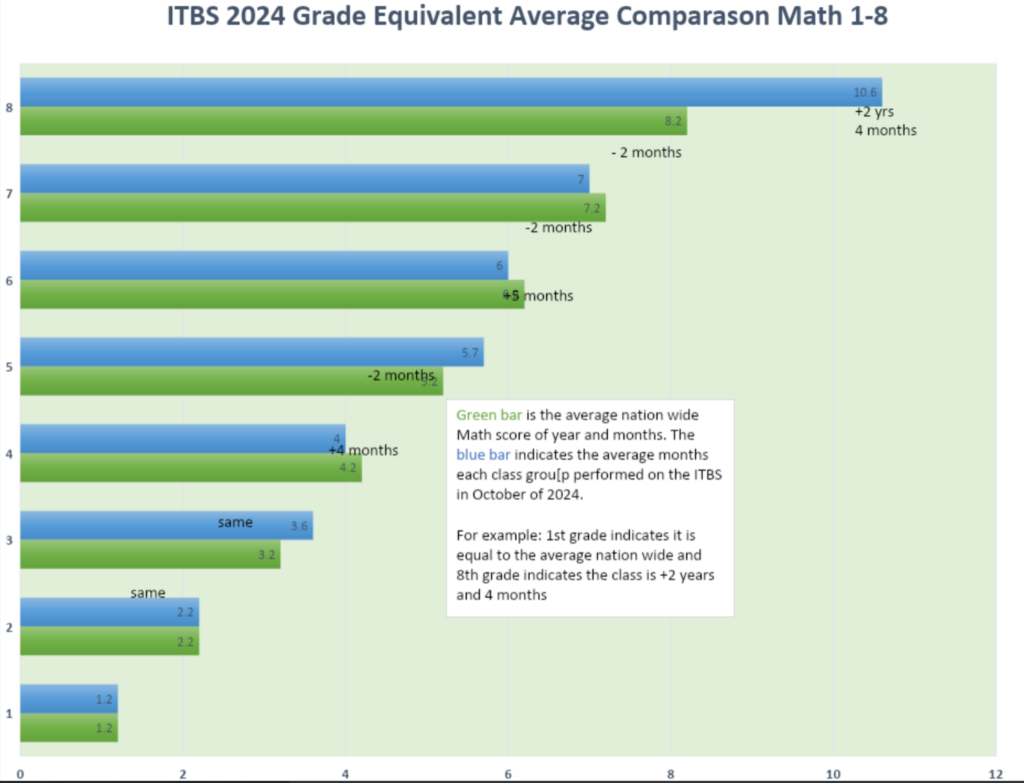 Our students top the charts each year in Standardized Test Scores (Iowa Test of Basic Skills)
